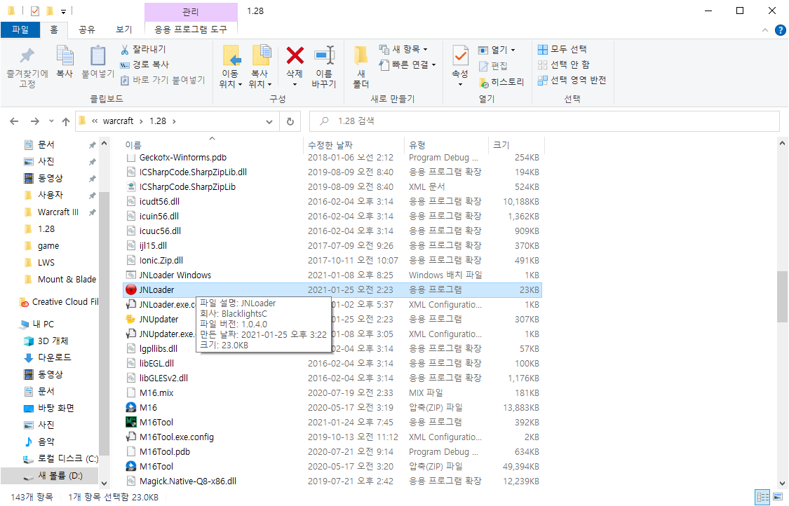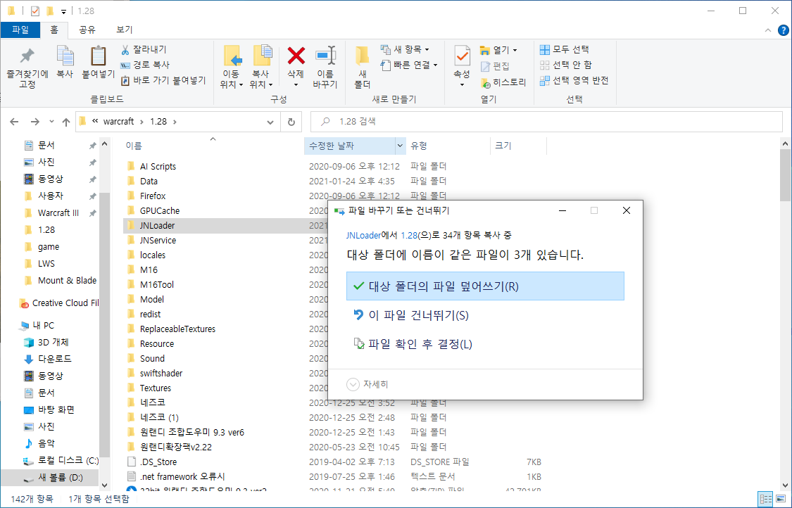 JN로더 폴더 속에 있는 파일들을 1.28 폴더로 옮기고 덮어쓰기를 해줍니다.
