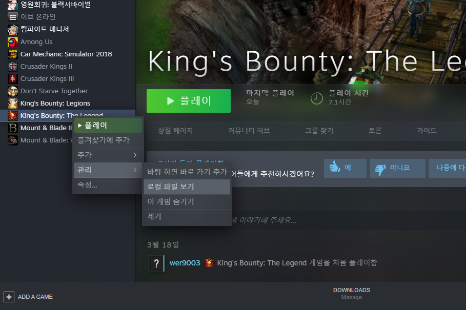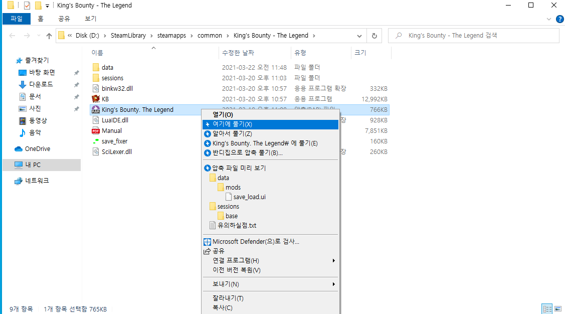 우선 킹스 바운티 더 레전드 한글화 파일을 위에 블로그에서 다운로드하여주세요!