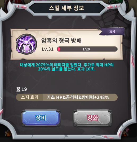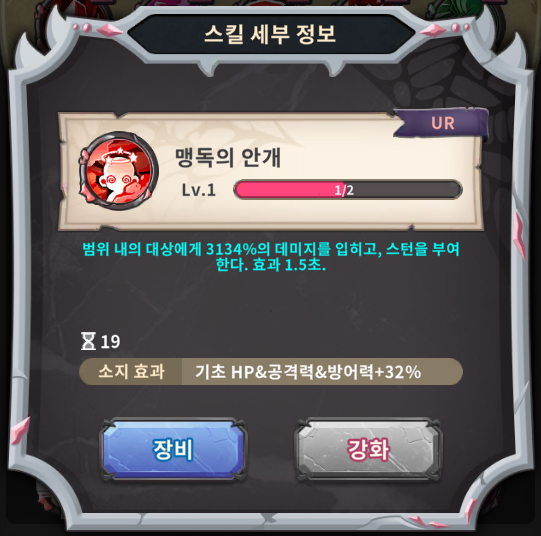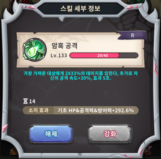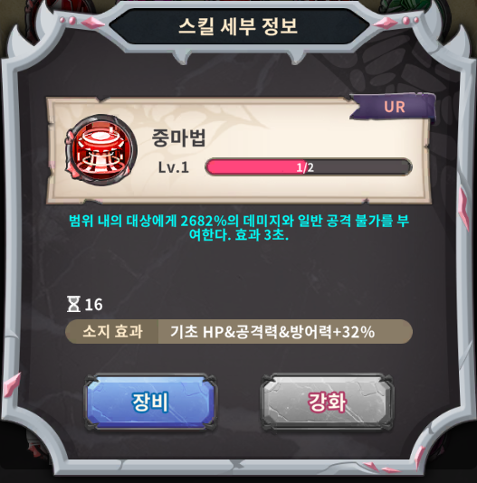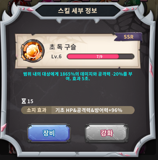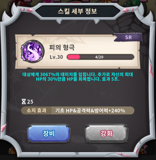 스테이지 밀 때, 보스 잡을 때 넣는 스킬입니다~