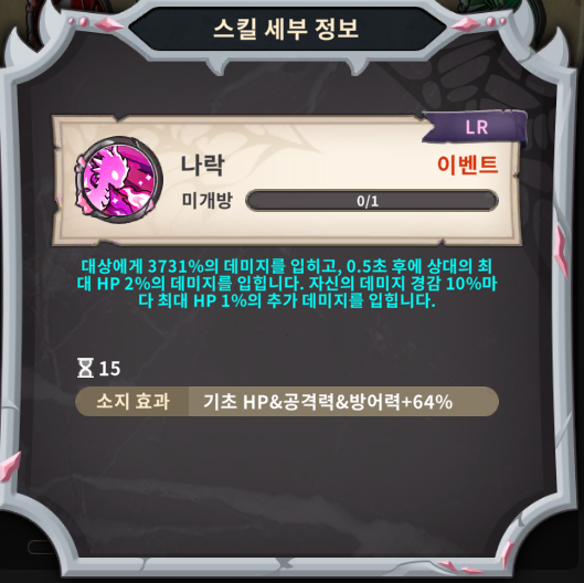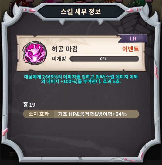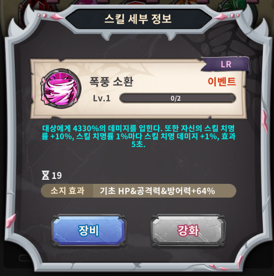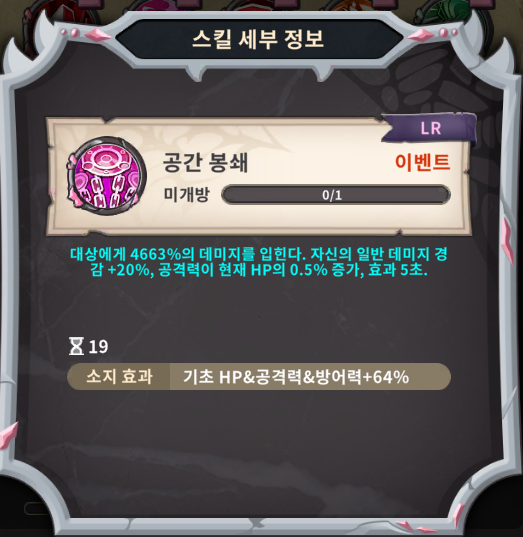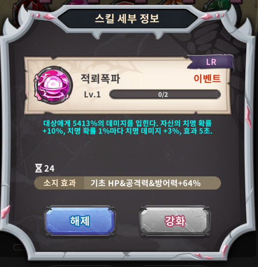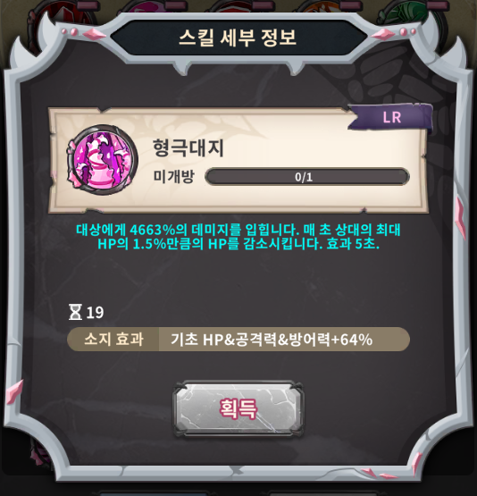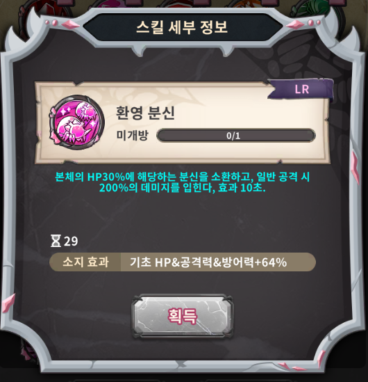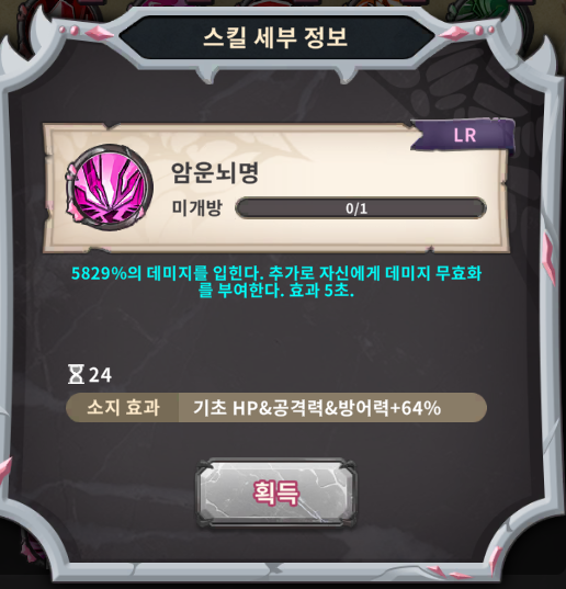 이제 제일 높은 등급의 스킬인 LR스킬을 보겠습니다~