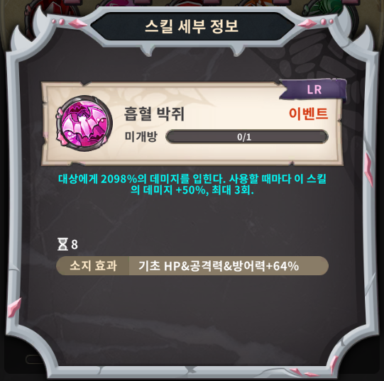 마지막으로 뽑기에서 뽑을 수 있는 스킬들인데요~