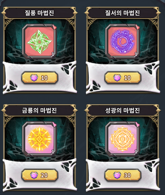 다음으로 이벤트에서 파는 마법진 하고 권능 캐릭터 스킬을 정리하려고 했는데요~