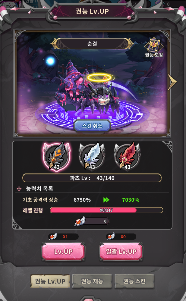유일하게 권능 업그레이드만 순위 경쟁이 없으니 뭘 쓰면 안 되는지 헷갈리신다면 권능업그레이드만 해도 된다고 기억하면 됩니다!