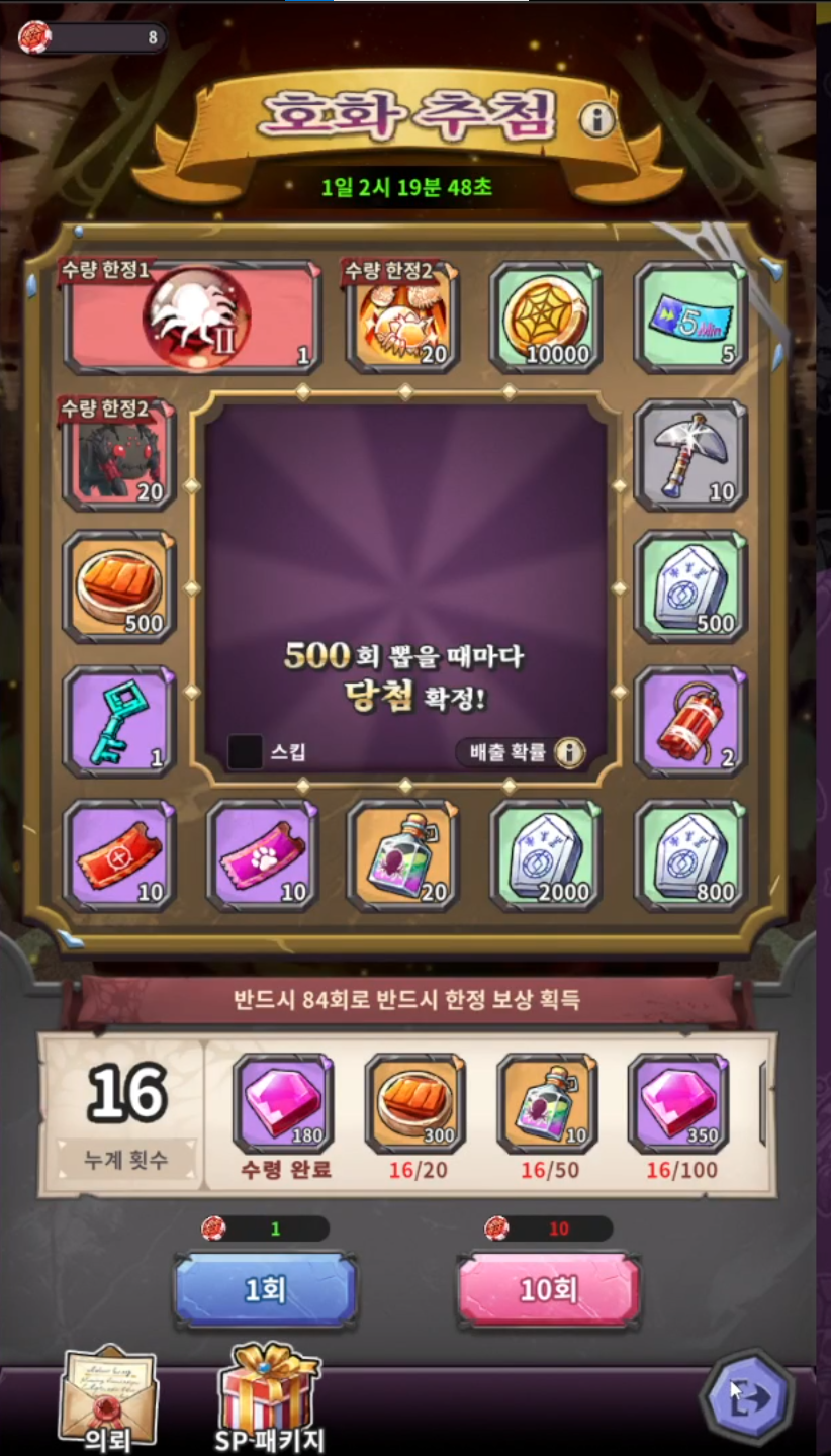호화 추첨은 기간마다 의뢰를 통해 칩을 모아 뽑기를 할 수 있는 시스템인데요~