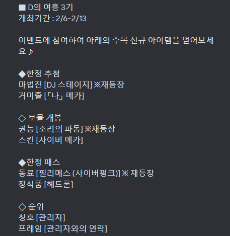 옛날 이벤트 같은 경우는 기록으로 남아있는게 별로 없어서 찾는 것도 쉽지 않았습니다~