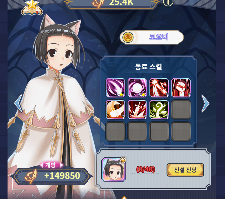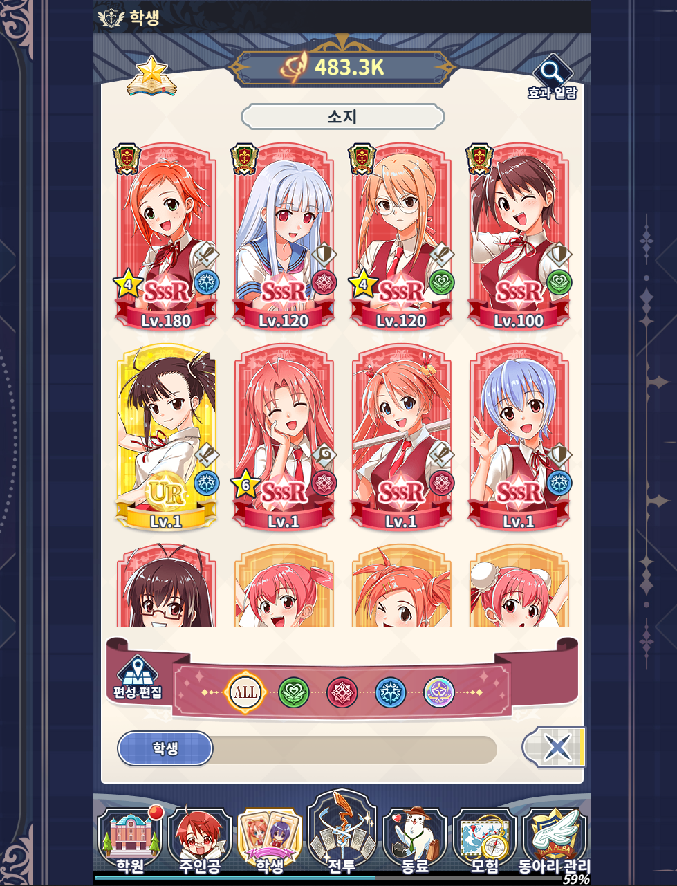 캐릭터 수집 이외에도 주인공 장비와 동료의 수집과 강화도 스펙업을 할 수 있는 요소입니다~
