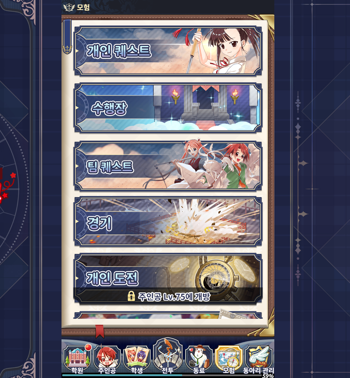 퀘스트를 따라 진행하면서 캐릭터와 동료를 강화해주고 뽑기를 통해서 캐릭터를 수집할 수 있습니다!